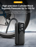 Precisión y seguridad: Cuenta con un manómetro digital que te permite controlar la presión en tiempo real y evitar el sobre inflado. Además, se detiene automáticamente al alcanzar la presión preestablecida.