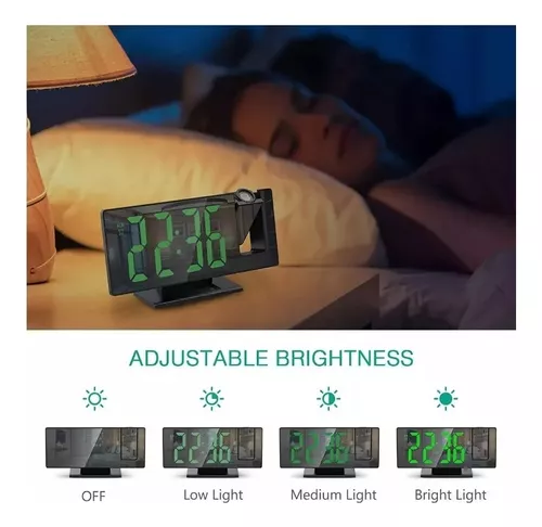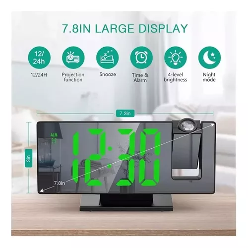 Pantalla LED grande y brillo ajustable: el reloj de proyección digital cuenta con un gran diseño de pantalla de espejo de 7.8 pulgadas y una gran pantalla de fuente, que te permite leer fácilmente la hora. Con 4 niveles de brillo con ajuste automático de brillo; también puedes ajustar manualmente el brillo a un nivel cómodo en cualquier momento.